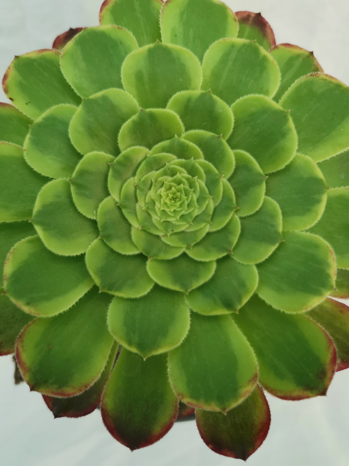 • Planta suculenta roseta verde com bordas vermelhas num vaso branco