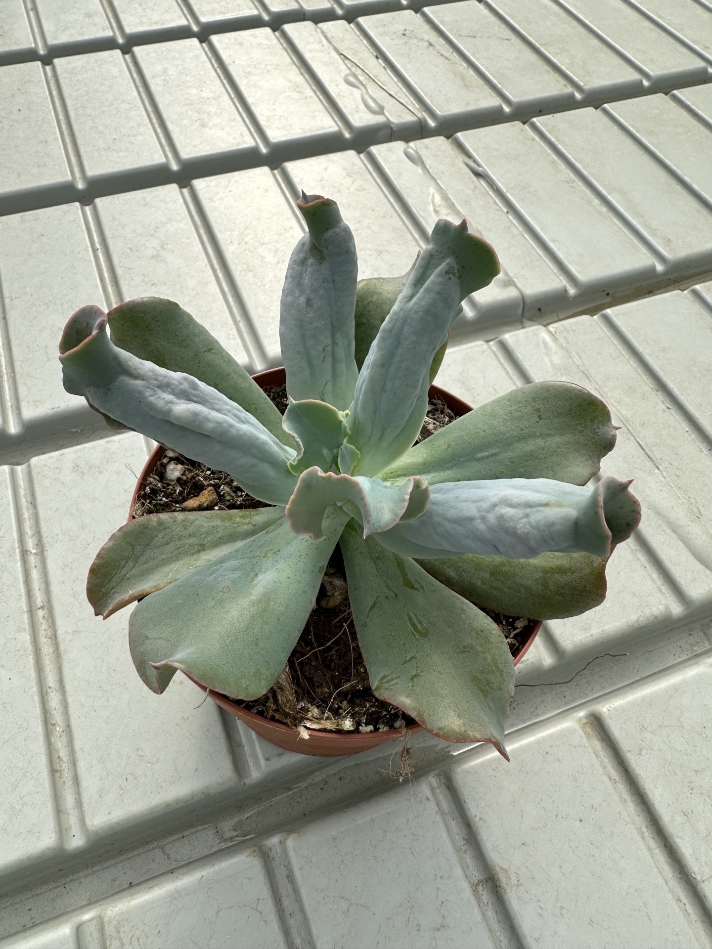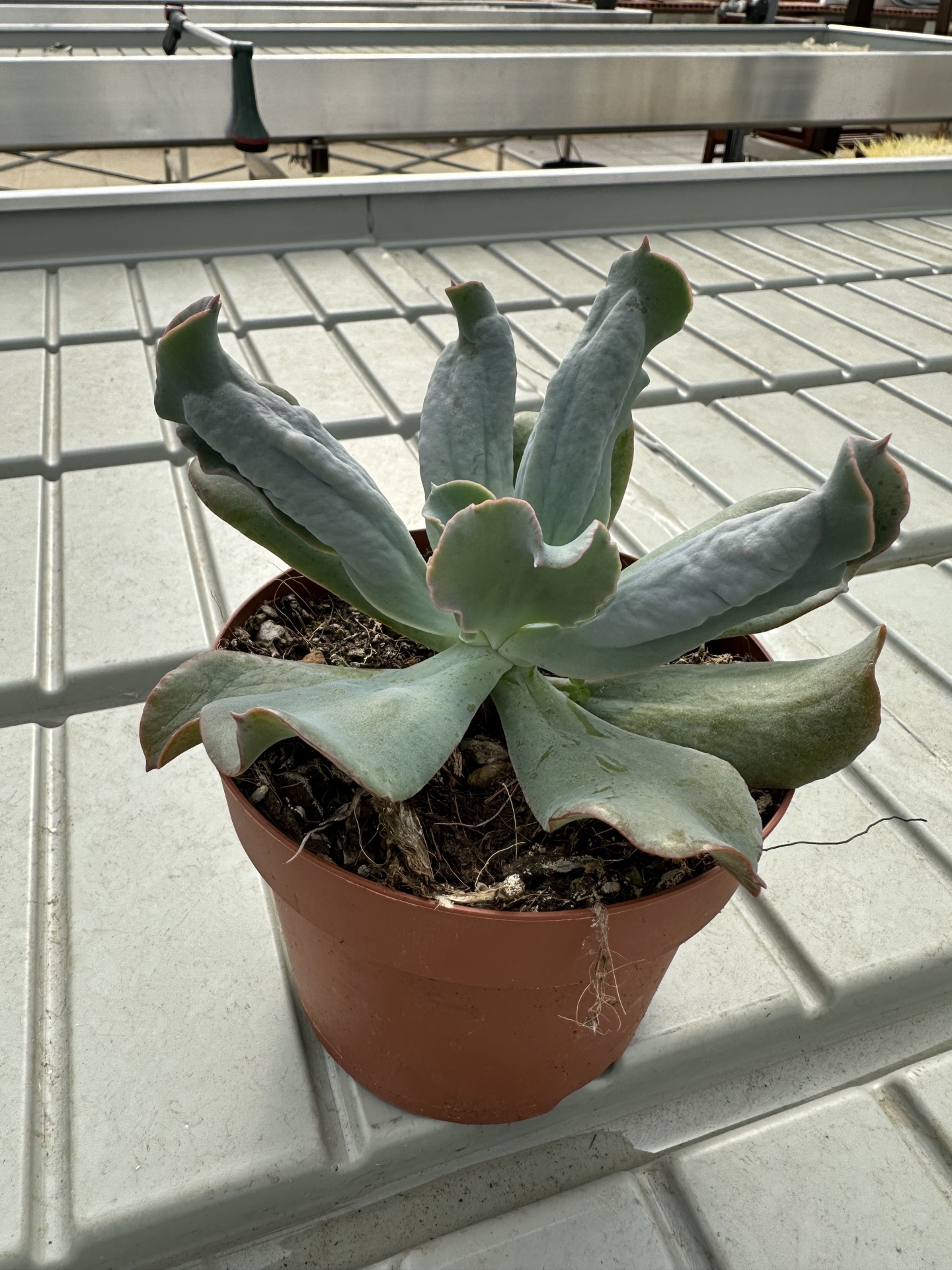 • Planta suculenta verde em vaso castanho sobre grelha branca