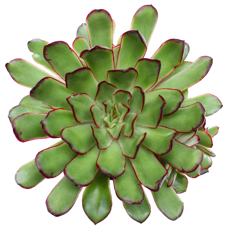• Planta suculenta verde com bordas vermelhas sobre fundo branco