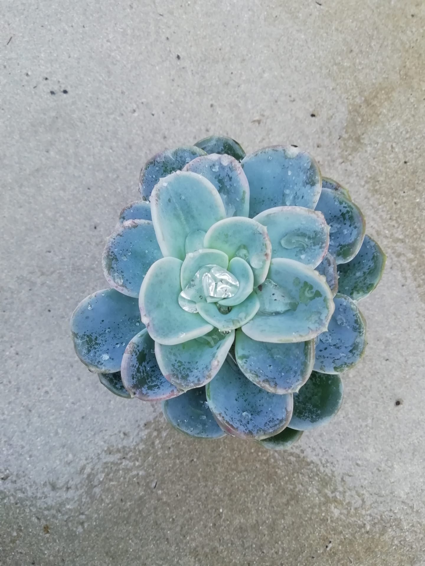 Planta suculenta Echeveria verde-azulada vista de cima