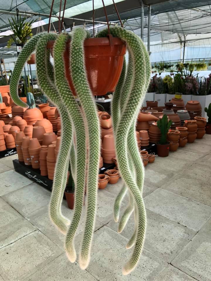 • Vaso suspenso com planta cactus pendente em loja de jardinagem