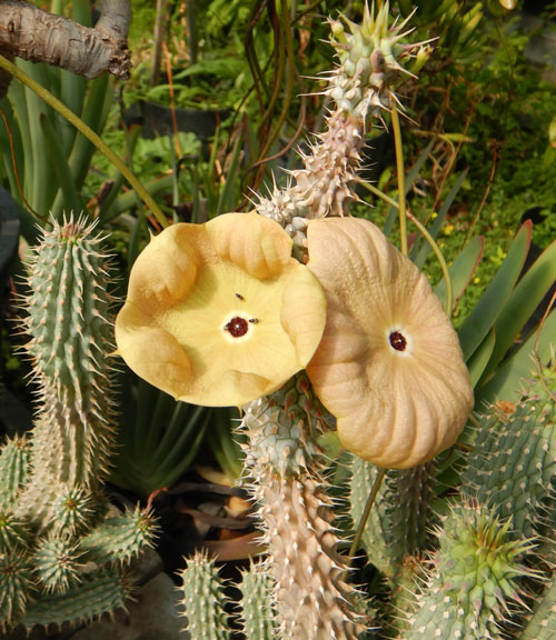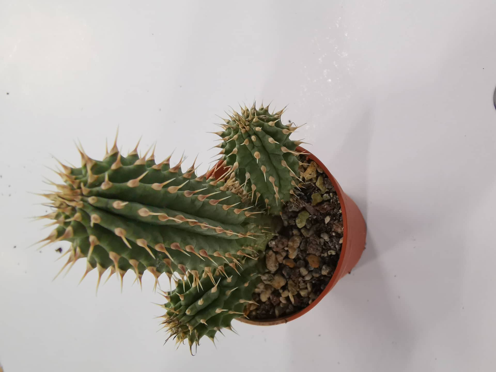 • Planta suculenta com flores amarelas pálidas e caules espinhosos