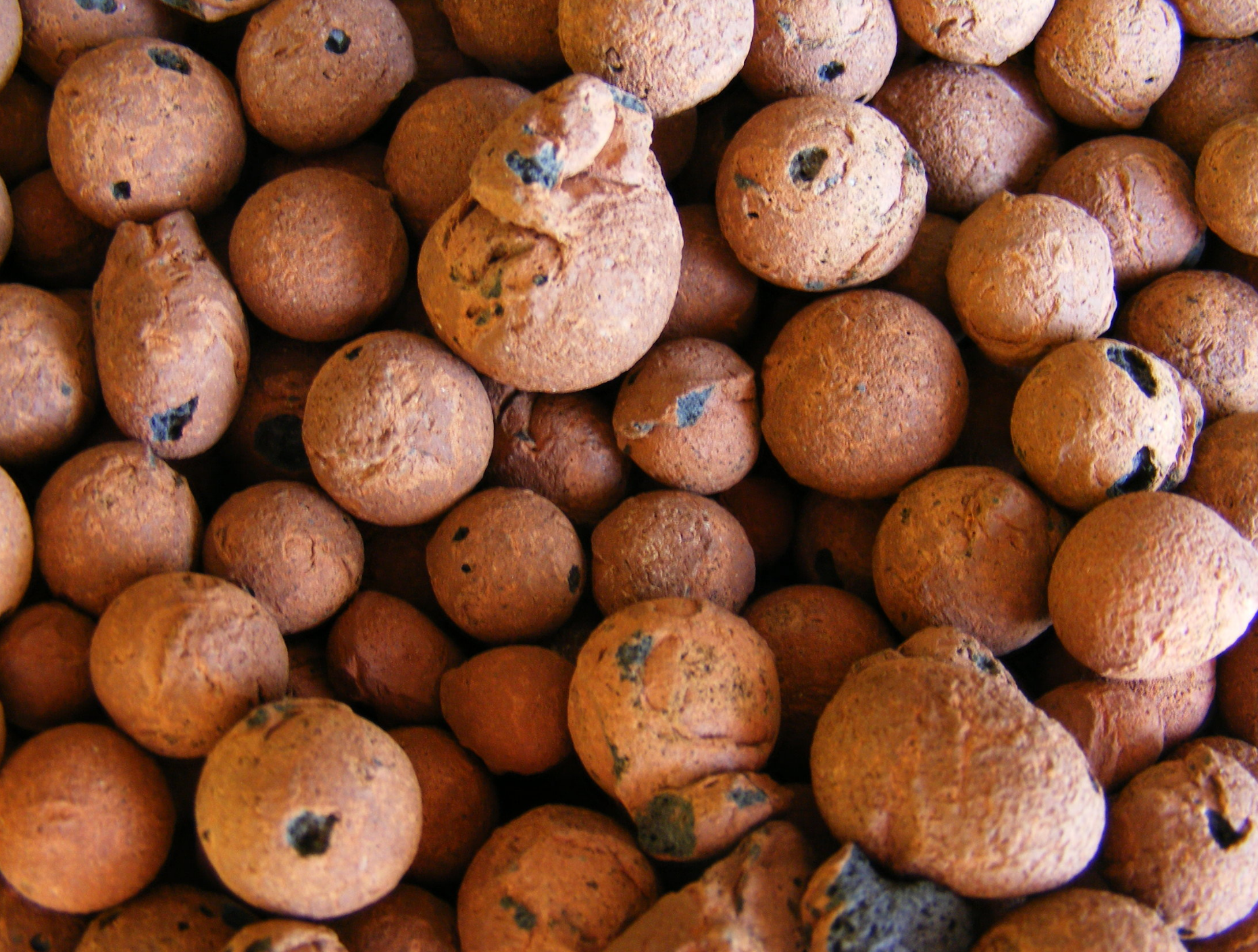 • Bolas de argila expandida castanhas com textura rugosa
