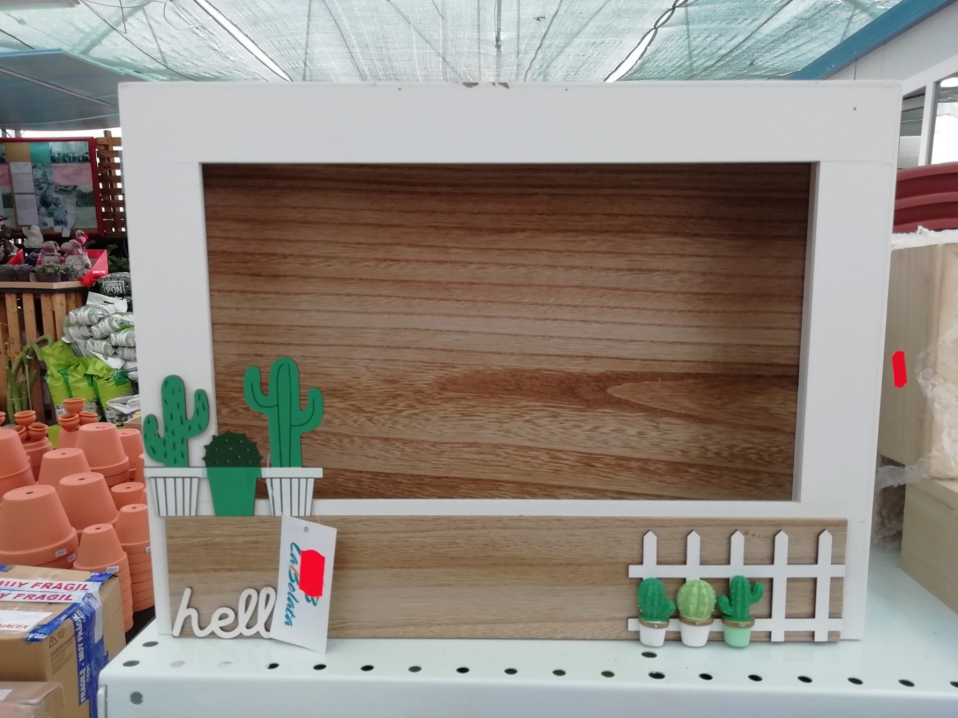 • Moldura de madeira com decoração de cactus em prateleira