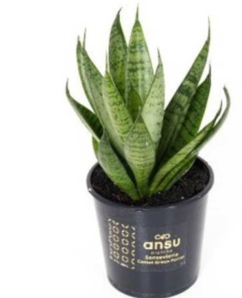 • Planta Sansevieria em vaso preto com rótulo