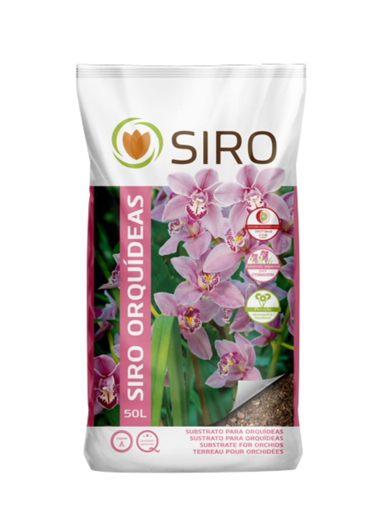 Pacote de substrato para orquídeas Siro Orquídeas 50L com imagem de flores cor-de-rosa