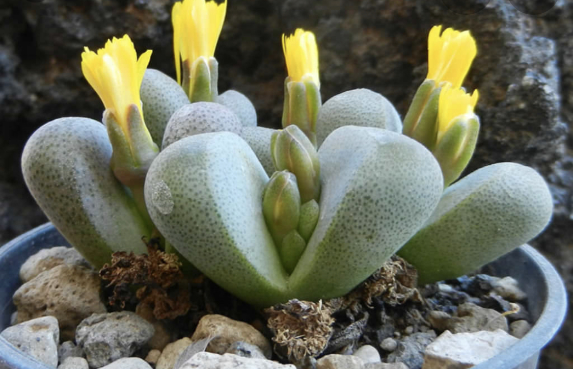 • Vaso com plantas suculentas lapídios com flores amarelas