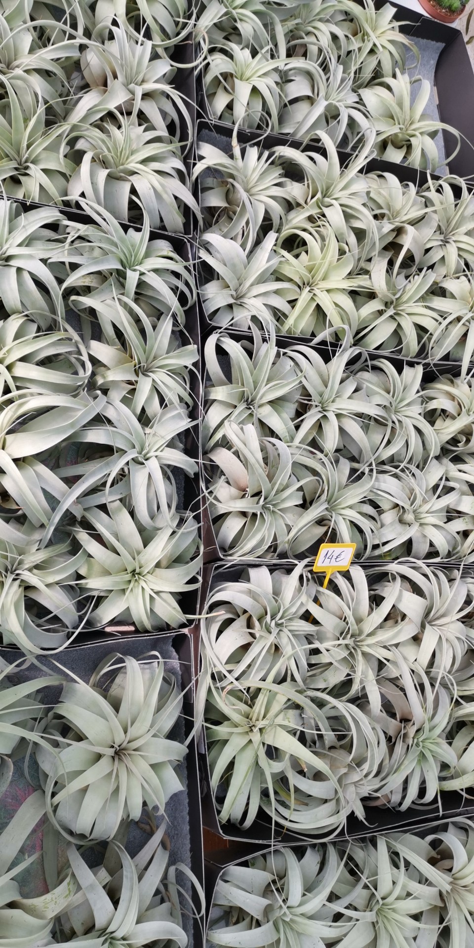 • Plantas de Tillandsia em caixas com etiqueta de preço 14€